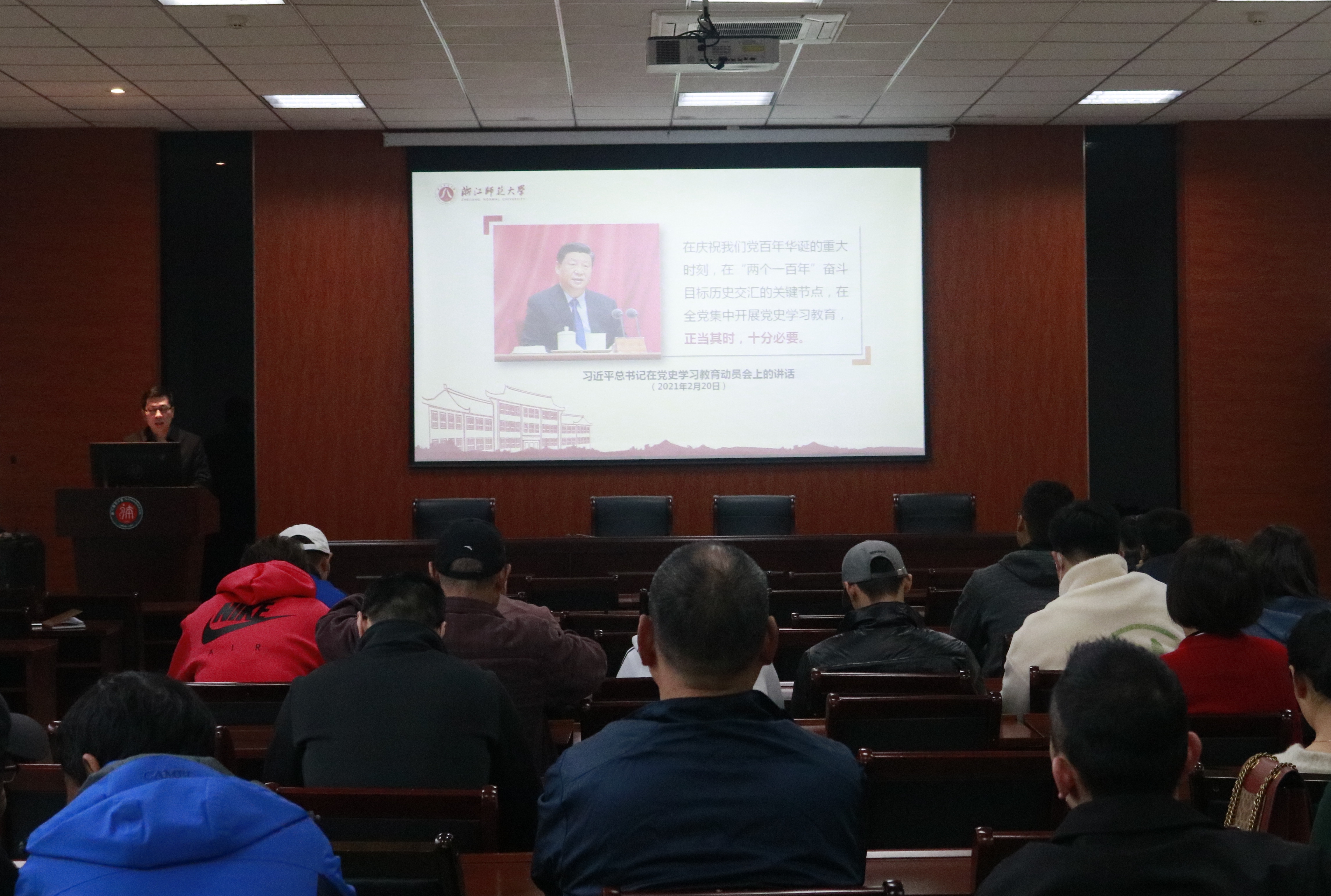 姜洪友以全国“时代楷模”陈立群的先进事迹勉励全体教职工,号召大家学习陈立群员工自觉担当立德树人、教书育人的使命,树师表、铸师魂、弘师道。他希望通过本次“同上一堂党史课”主题宣讲,全体教职工要紧紧围绕学党史、悟思想、办实事、开新局,守好红色根脉、奋力争先创优、践行“五大历史使命”,为建设特色鲜明的一流大学而共同努力,以实际行动和优异成绩庆祝中国共产党成立100周年。