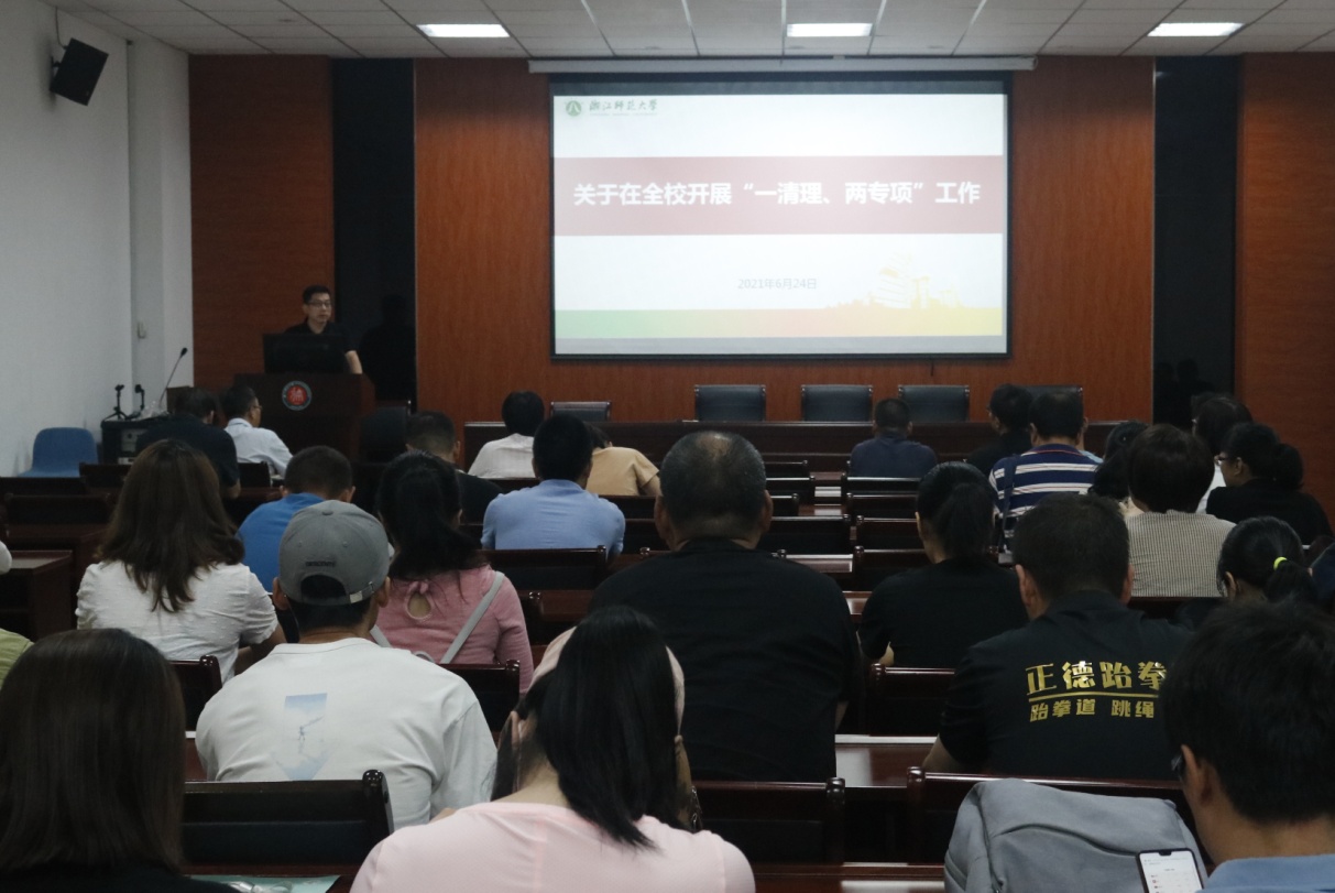 6月24日上午,公司在第一会议室召开学期末安全稳定会议和“一清理、两专项”工作动员部署会,全体教职工参加会议。