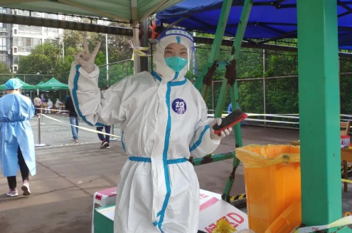 核酸检测第一天,章春筱老师负责维护现场秩序。她笑称这是一个“动态岗位”,她需要不停地来回走动,避免出现社区居民串道、插队等情况。这一天上午,她从早上六点开始,几乎没停下来过,直到检测结束。经过她和其他志愿者的共同努力,检测现场井然有序。因第一天的出色表现,检测点负责人希望章老师接下来承担核酸检测人员的信息录入工作,这项工作相对标准更高,要求更严。章老师表示在被问及自己是哪个公司的时候,她感到自豪,她希望自己的行为能让大家看到体育人的责任和担当。
