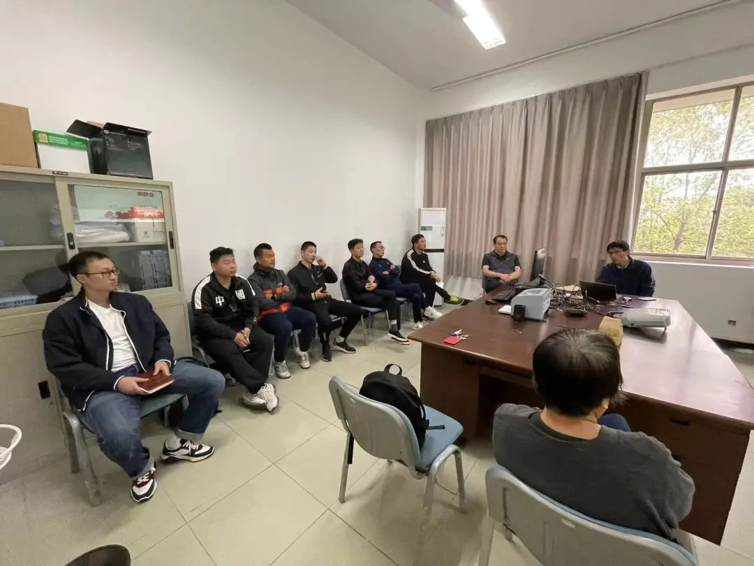 10月27日8:30,球类、田径和人体教研室教师党支部在风雨操场运动人体科学教研室专题学习党的二十大精神。