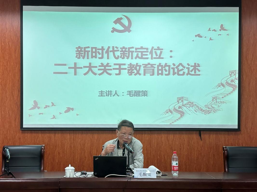 随后,毛醒策老师结合系列事例深入阐述了“贯彻党的教育方针”、“落实立德树人根本任务”、“加快建设高质量教育体系”、“发展素质教育”、“促进教育公平”等内容,并希望公司教职工不断学习,反复思考,充分运用,指导实践,以党的二十大精神为指引,不断提升育人水平和人才培养质量。