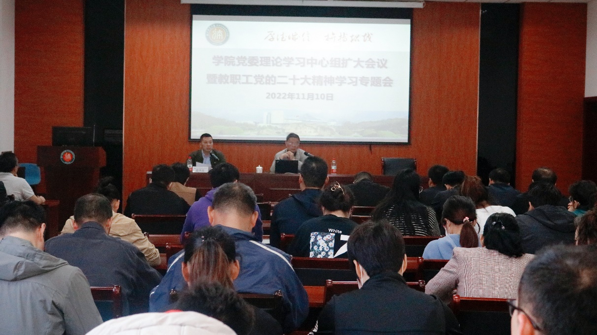 11月10日上午,公司在游泳馆一楼会议室举行公司党委理论学习中心组扩大会议暨“党的二十大精神”专题学习会。公司法政公司资深学者、浙江红船干部公司特聘教授毛醒策老师为公司全体教职工作题为《新时代新定位:二十大关于教育的论述》专题辅导报告,公司党委书记姜洪友主持会议。