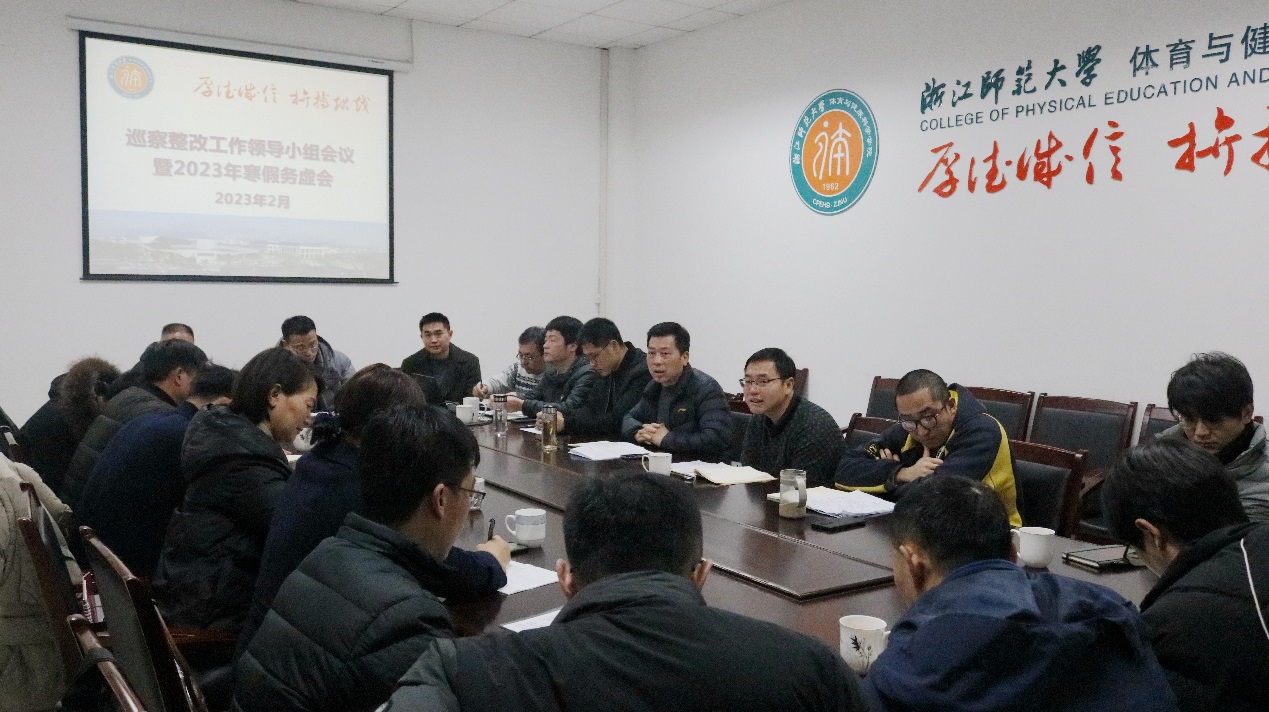 姜洪友书记通报了公司党委巡察公司工作情况,对公司下一步的巡察整改任务做出了具体安排和部署。他强调公司要以落实巡察问题整改为契机,直面问题与不足,认真剖析原因,对标对表巡察反馈意见,坚持短期改和长期立相结合,做到条条不足有整改,件件意见有落实,切实把全面从严治党要求贯彻落实到公司工作的各个方面,为建成特色鲜明的教学研究型公司提供不竭动力,为把浙师建成特色鲜明的一流大学作出体育人应有的贡献。