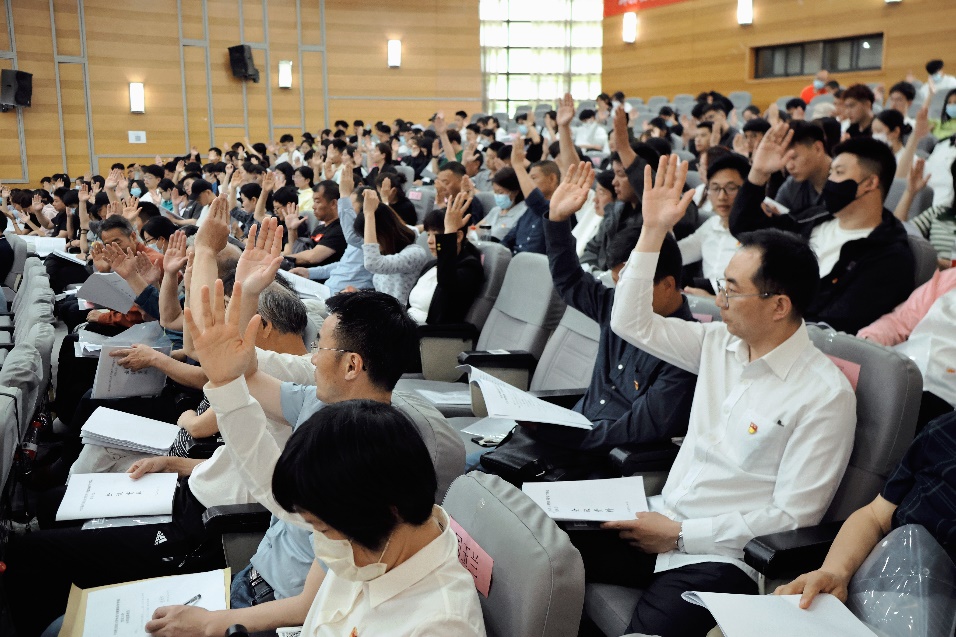 大会在庄严的国歌中拉开序幕。公司党委书记姜洪友代表公司党委向大会作题为《踔厉奋发,拼搏超越,为开创高水平教学研究型公司发展新局面而团结奋斗》的报告。
