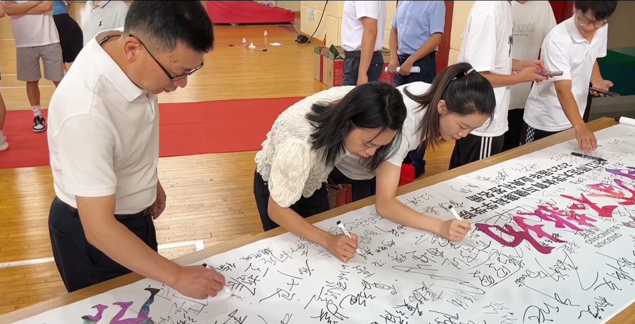 同学们到达典礼现场后,纷纷在印有“青春不散场”字样的毕业典礼签名册上留下了自己的名字,留念这段美好的时光。