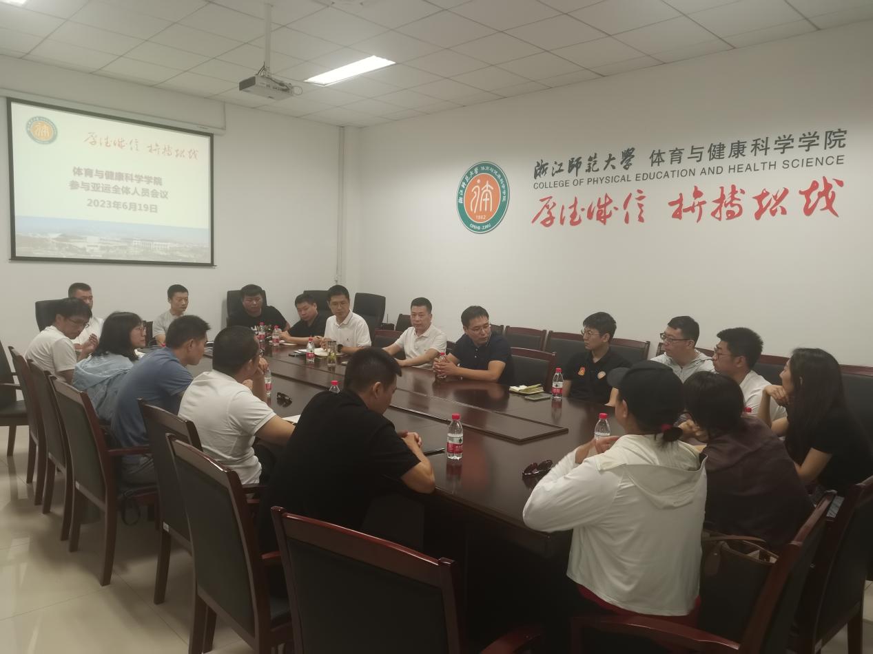 在杭州亚运会进入倒计时冲刺阶段,公司东田径场亚运测试赛临近之际,6月19日上午,公司召开参与亚运人员全体会议,对公司参与亚运全体人员进行再动员、对亚运筹备工作进行再部署,鼓干劲,强信心,号召全体人员以最饱满的热情,最优质的服务投入到亚运筹备工作中去,展浙师风采、展体院风采。经理李启迪、党委书记姜洪友参加动员会并作动员讲话。