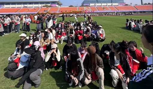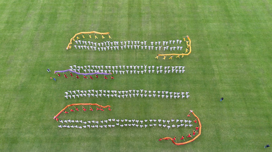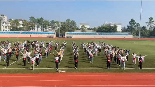 256名员工组成的“中华健身鼓团队”来自全校的公共体育课班级,包括亢子艺老师的公共体育--健美操班和公共体育健美操队队员、姜小平老师的公共体育--牛仔班和校体育舞蹈队成员以及公体健艺舞教研室其他老师公共体育课班上的员工。