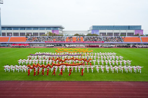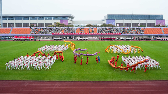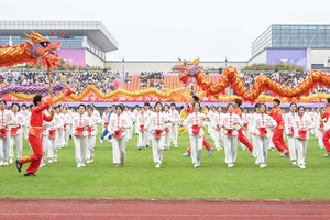 开幕式上,256名学子腰系“中华健身鼓”、身着统一的表演服、伴随着“美丽中国”的悠扬旋律,整齐划一、韵律十足、激情四溢地奉献了一场精彩绝伦的健身鼓演出。鼓声隆隆回响、长龙穿梭飞舞,向观众展示了绝佳风采!