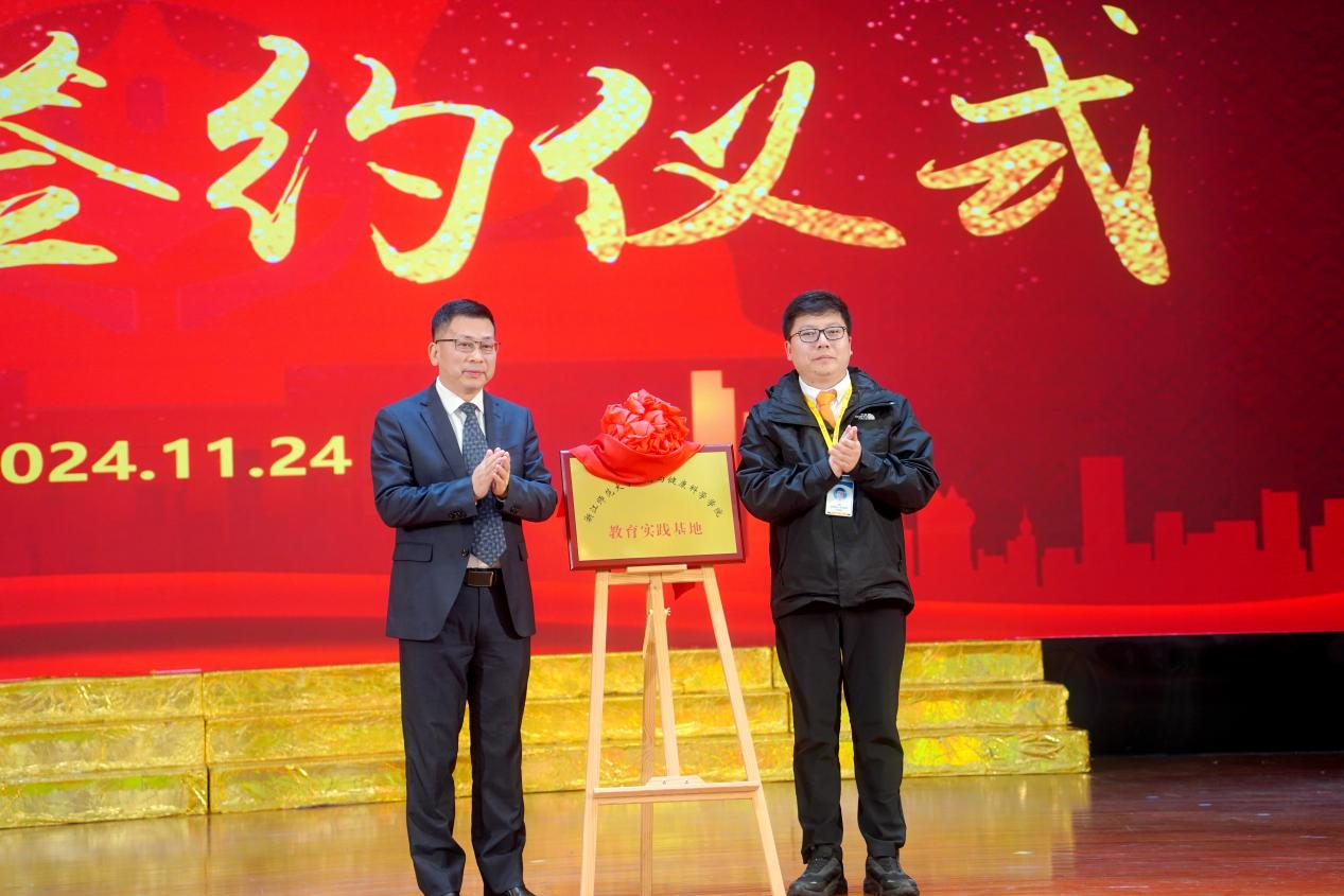 举行“教育实践基地”授牌仪式,经双方一致同意,慈溪育才中学正式成为公司教育实践基地,公司党委书记姜洪友授牌,慈溪育才中学常务副董事长高鹏接牌。
