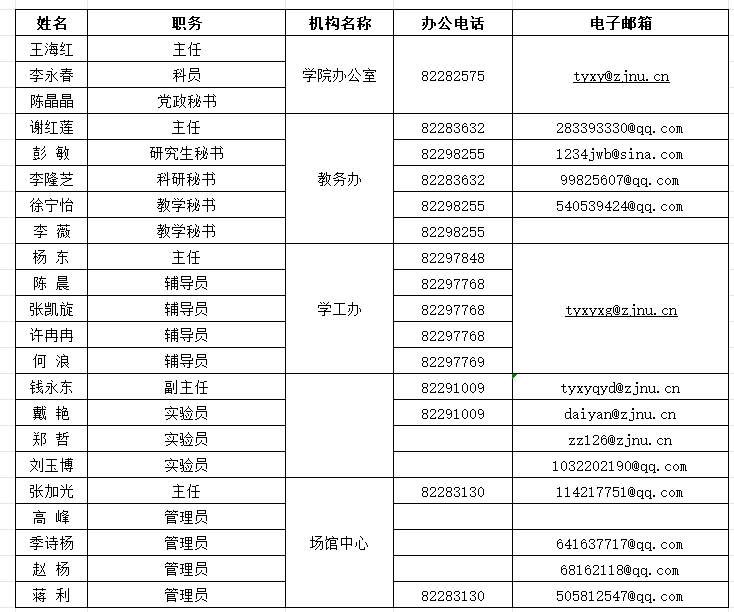 经理信箱:tyyzsj@zjnu.cn | 书记信箱:tysjyz@zjnu.cn