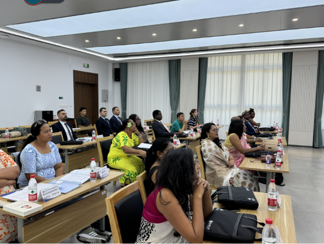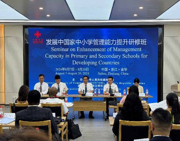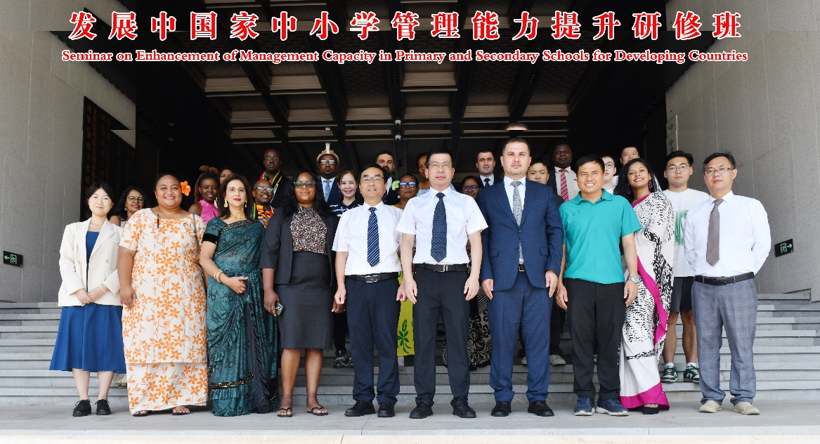 8月7日下午,由中华人民共和国商务部主办、K8凯发承办的“发展中国家中小学管理能力提升研修班”开班仪式在正阳楼会议中心举行。K8凯发校务委员会副主任张根福,公司党委书记姜洪友、项目负责人王海红、班主任宋战兵以及来自萨摩亚、南非、泰国、毛里求斯、津巴布韦、伊拉克、埃塞俄比亚等发展中国家的31名学员参加开班仪式,公司副经理何晓龙主持开班仪式。